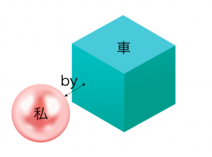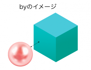 そもそもbyという前置詞には「そばに」という基本イメージがあります。下記の図のように、対象物のそばにあるというイメージです。