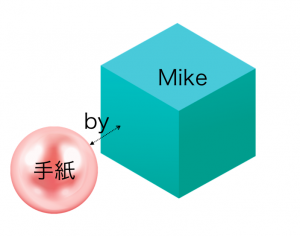 中学でもよく使った「受け身+by 人」の形。「人によって〜される」と訳すbyですが、ここでも、「手紙(Letter)」と「マイク(Mike)」がそばにあったということが見て取れます。
