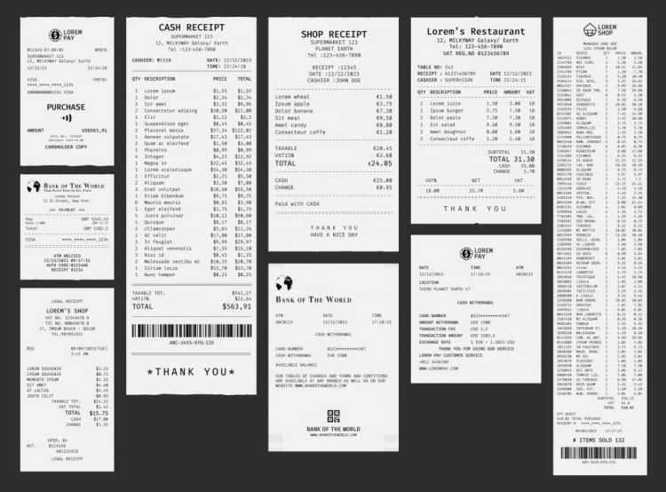海外ではレシート=領収書という考え方なので、日本とは違い手書きの領収書をレシートと別に発行する文化はありません。領収書はA5やA4で印刷されたものから、レジ用紙など様々です。