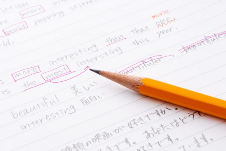 最近は英検の学習がスマホやパソコンでもできます。気軽に勉強できていいのですが、スマホやパソコンではスペルミスをしてもスペルチェックや予測変換されてしまい、スペルが覚えられなかったり、スペルミスに気づきにくくなったりします。本番では手書きで書くので、普段のライティングパートに向けた学習も手書きで練習するようにしましょう。