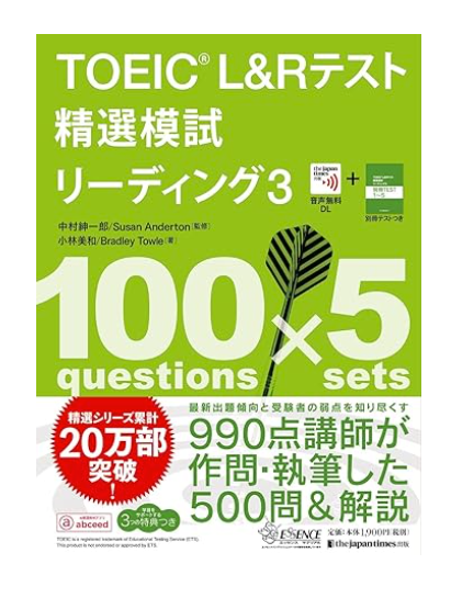 TOEICの出題形式にも慣れ、あとは実践となる模試に多く挑戦したいという人におすすめの『TOEIC(R)テスト新形式精選模試リーディング3』。リーディングに特化した5回分の模試が収録されているので、リーディングセクションでなかなか点数が取れないという人にも適しています。