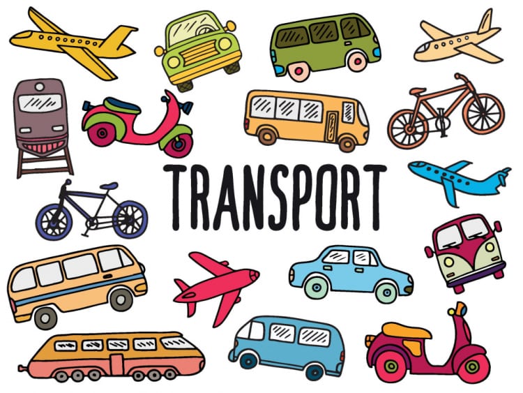 bus(バス)、train(電車)、airplane(飛行機)、ship / boat(船)、motorbike(バイク)、horse(馬)、lift / escalator(エスカレーター)など