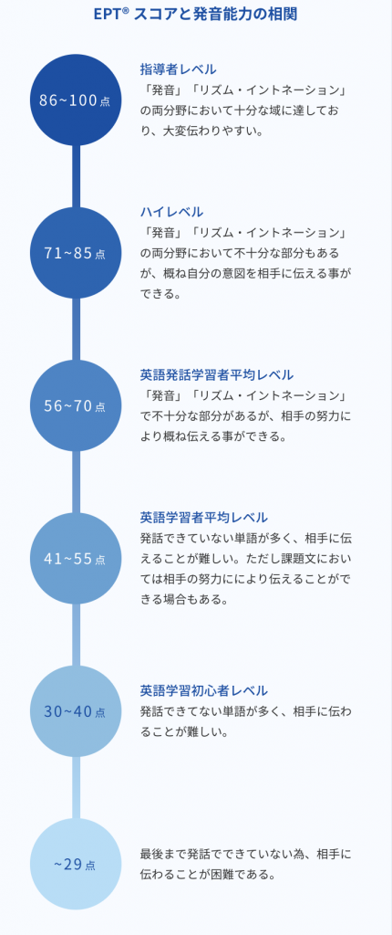 EPTは「English Pronunciation Test」の略で100点満点中何点か、というスコア制なので、自分の現在の状況を測るのにもオススメです。