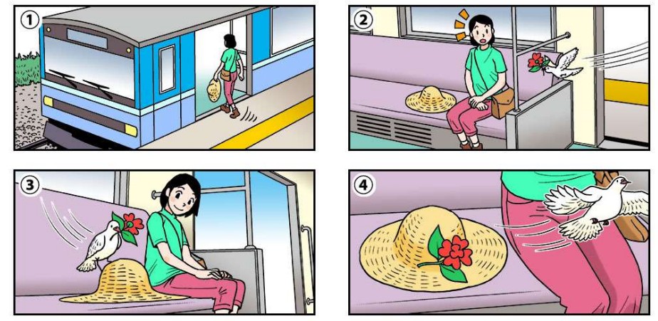 Part Cは4コマのイラストを見て、そのストーリーについて説明する問題です。準備に30秒、解答に40秒使えます。