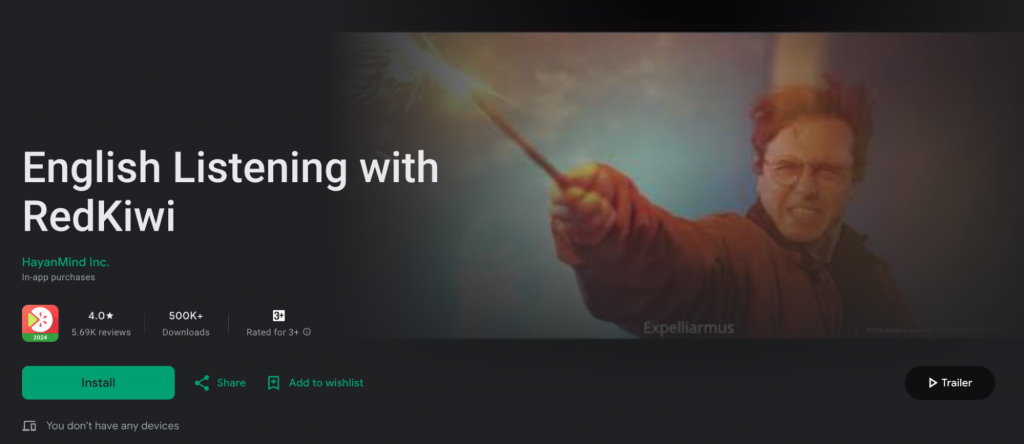 映画を使ってリスニングトレーニングができるアジアナンバーワンの大人気のアプリで、総ダウンロード数はなんと4億回!TVドラマから映画、セレブのインタビュー、アニメなどさまざまなジャンルのものが用意されているので、好きなものを選んで学習できます。一本の動画の長さとしては1-2分程度で長すぎず短すぎず、リスニング訓練には最適なものになっています。日本語への切り替えもできます。